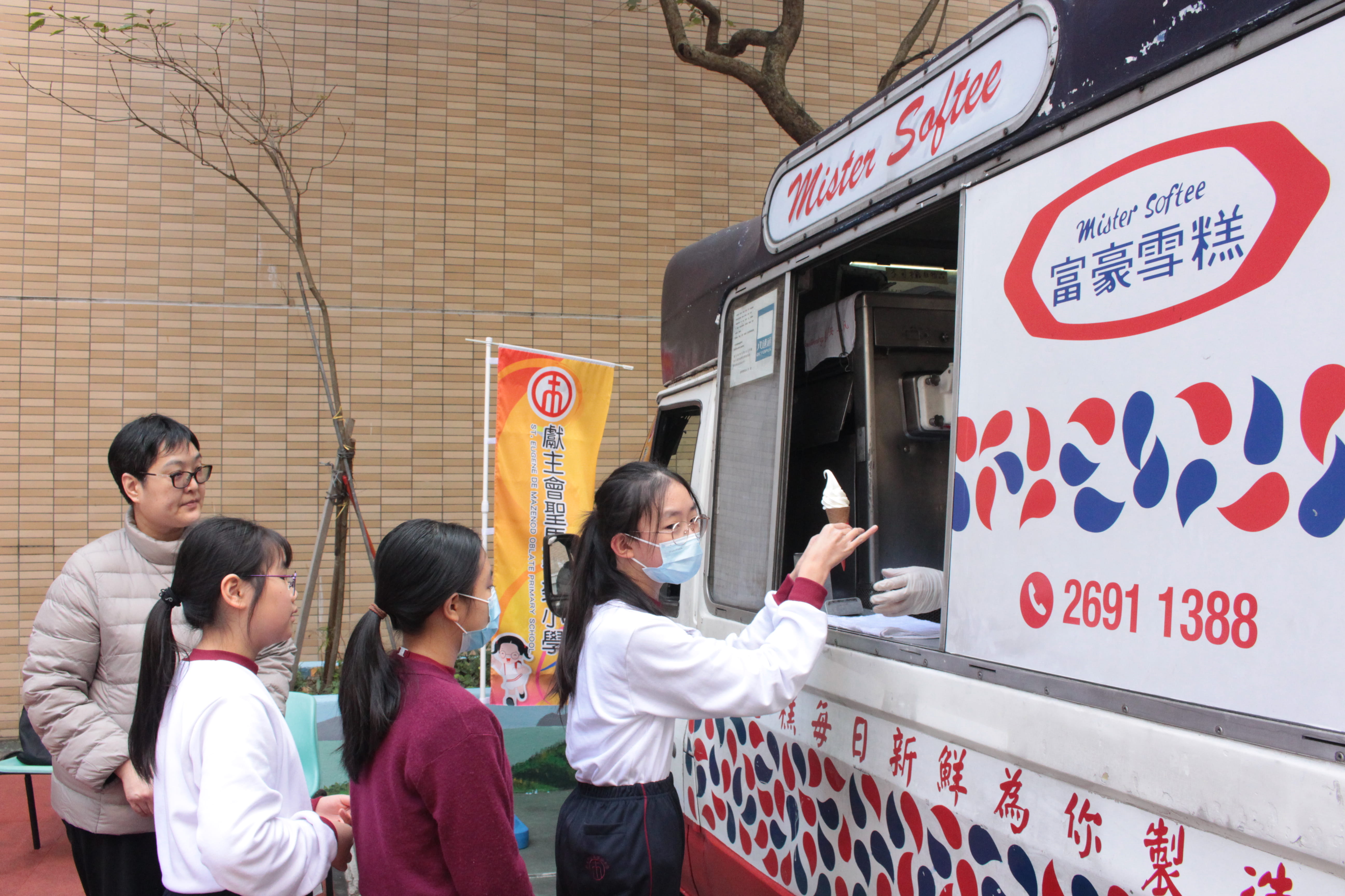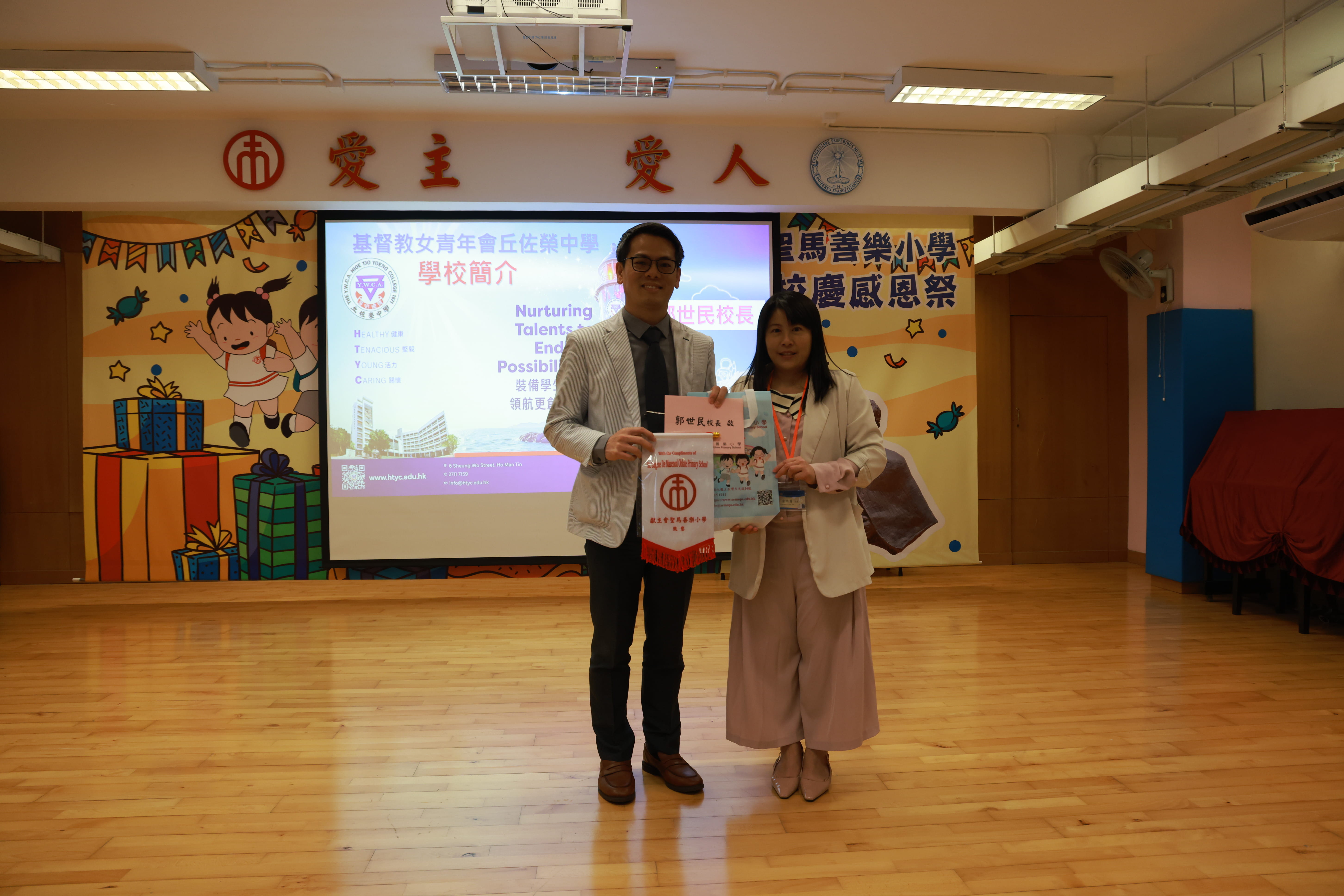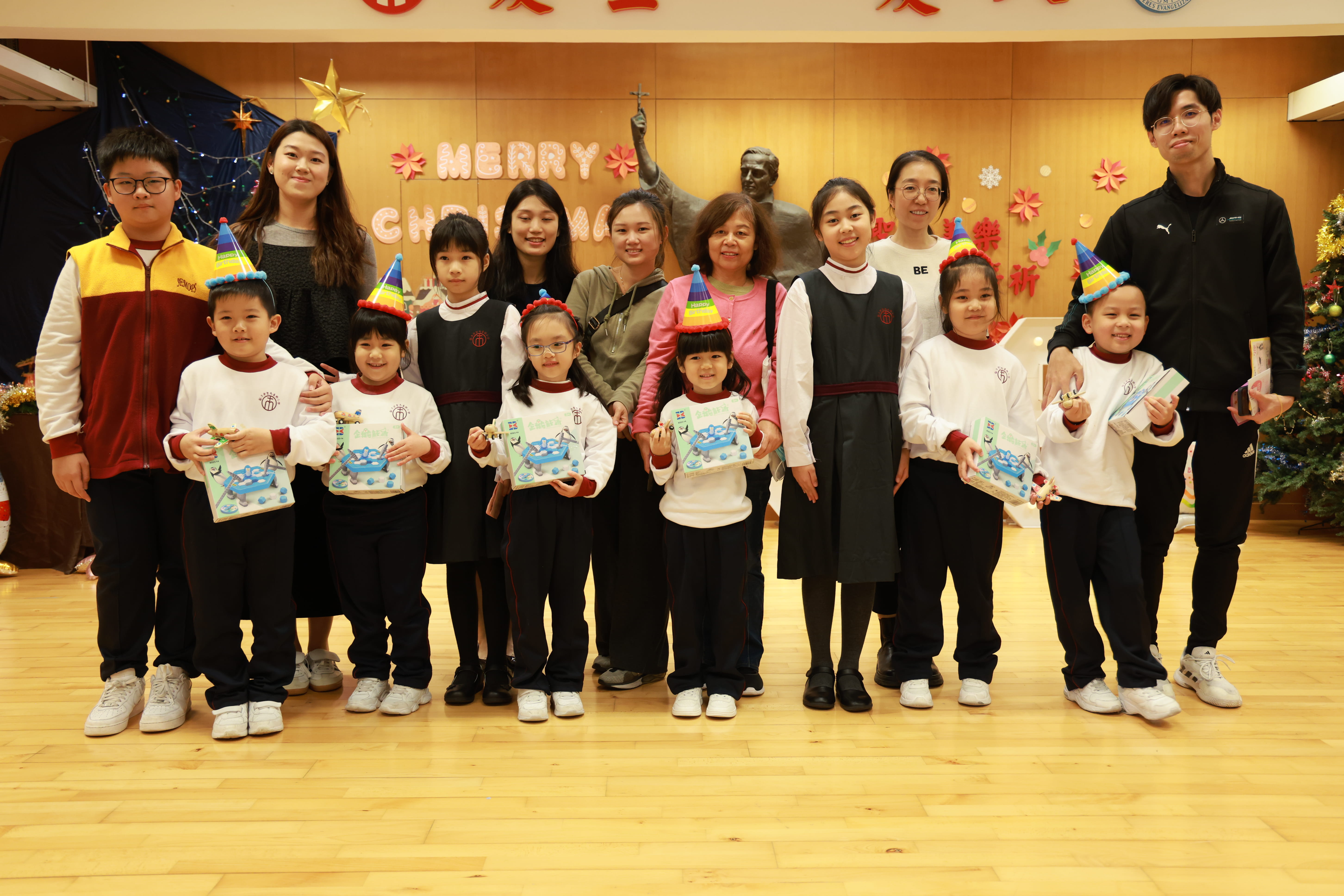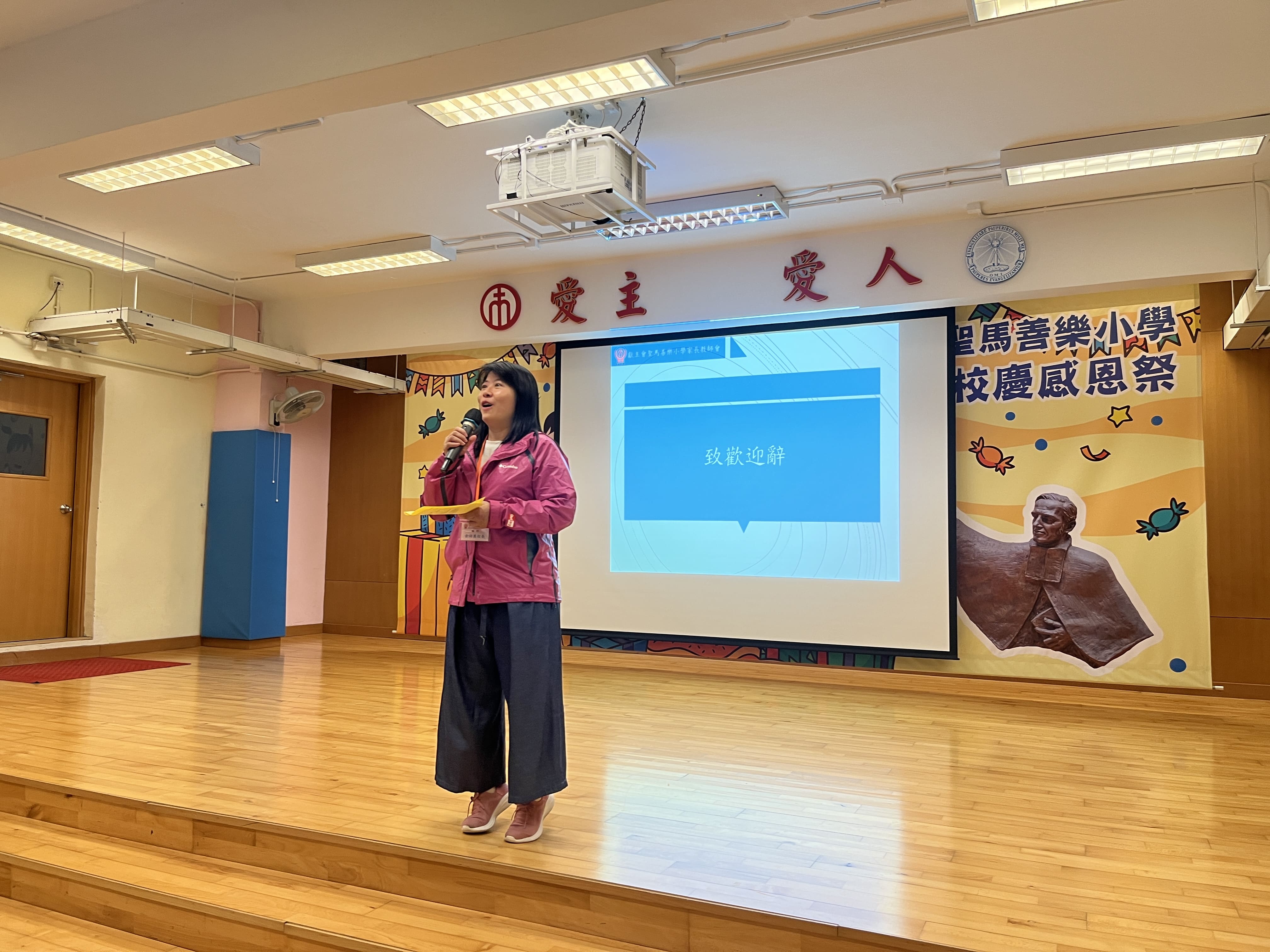 全圖寓意歡欣雀躍的小朋友在獻主會聖馬善樂小學內,